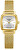 Čtvercové pouzdro dodává modelu moderní a lehce retro nádech, díky kterému hodinky zaujmou na první pohled. Světlý ciferník je doplněný jednoduchými zlatými indexy a ručičkami, takže celek působí čistě, decentně a velmi vkusně.