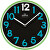 Černý podklad ciferníku vytváří výrazné pozadí pro plastické číslice v tyrkysové barvě, které jsou doplněné bílou dvanáctkou – tato kombinace nejen upoutá pozornost, ale zároveň zaručuje skvělou čitelnost. Zelený rámeček pak dodává hodinám svěží, optimistický nádech.